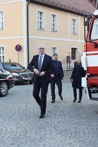 Steffen Teuber verpackte Gründung und auch weitere Geschehnisse geschickt in eine Märchenform. Das lockerte die Festrede auf und rief im Publikum den einen oder anderen Lacher hervor. „Dieses Fest ist ein kleiner Lichtblick in dieser herausfordernden Zeit“, so der Ortswehrführer. Dabei war eigentlich die Corona Krise gemeint. Keiner hätte jedoch gedacht, dass die Veranstaltung im Angesicht eines Krieges in Europa stattfinden würde. Deshalb stehe sie umso mehr im Sinne der Kameradschaft, so Teuber. Eine besondere Freude für alle war der Besuch von Ministerpräsident Dietmar Woidke. Dieser hat damit ein Versprechen eingelöst, welches er den Kameraden 2018 bei den großen Waldbränden bei Treuenbrietzen gegeben hatte. Dabei entstand dies auf eine eher kuriose Weise. Nach bereits 12 stündigem Einsatz im Brandgebiet und die Rückkehr nach Reetz bekam Steffen Teuber einen Anruf der Leistelle, er solle sich noch einmal mit Mann und Maus auf den Weg in den Bereitstellungsraum machen. Ein Missverständnis in der Kommunikation, wie sich dort herausstellte. Denn eigentlich wurden nur Fahrer und Fahrzeug gesucht, die den Ministerpräsidenten und auch die Presse sicher durch das Brandgebiet begleiten sollten. So rang Steffen Teuber dem Minister nicht nur ein gemeinsames Foto, sondern auch das Versprechen ab, beim 100. Geburtstag dabei zu sein. „Und Versprechen muss man halten, besonders in der Politik“ so Dietmar Woidke in seinen Grußworten. Er nutze die Gelegenheit für ein offizielles Danke an alle Feuerwehrfrauen- und Männer. Bei Brandgroßereignissen stehen die Kameradinnen und Kameraden im Mittelpunkt der öffentlichen Berichterstattung, dann geht es damit wieder bergab. „Vergessen werden dabei oft die zig tausenden ehrenamtlichen Stunden, die es für Aus-und Weiterbildung braucht“, so Woidke, „darüber wird leider viel zu wenig gesprochen.“ Dabei ist er den Menschen dankbar, die nicht zugelassen haben, dass die Feuerwehren auf den Dörfern einschlafen und zieht so Parallelen zu seinem Heimatdorf. Es sei etwas ganz Besonderes und wichtig für die ganze Gesellschaft, welche die Arbeit der Freiwilligen Feuerwehren jedoch nicht als selbstverständlich hinnehmen sollten. Denn es gibt auch immer wieder schlimme Ereignisse. Diese hat auch Dietmar Woidke erlebt. Als er über die beiden 2017 auf der Autobahn getöteten Feuerwehrmänner aus Kloster Lehnin spricht, zucken seine Mundwinkel und er muss schlucken.