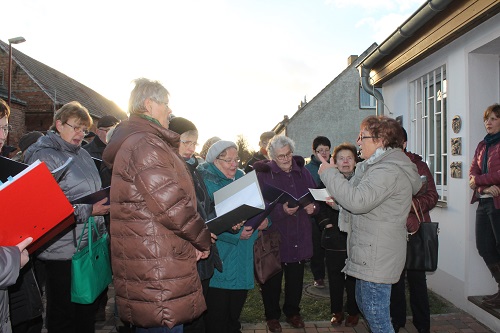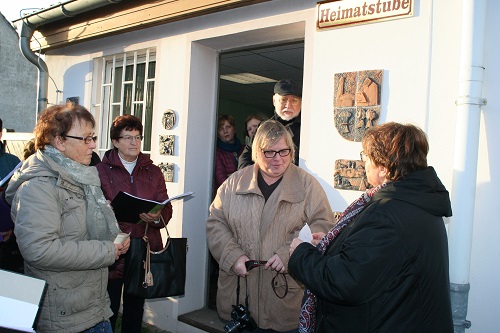 Die Temperaturen am 1. Advent waren jedenfalls schon mal glühweinverdächtig. Das merkten auch die Kameraden der Freiwilligen Feuerwehr und des Feuerwehrvereins an ihrem Stand auf dem diesjährigen Reetzer Adventsmarkt. Die Schlangen wollten einfach nicht abnehmen. Und das schon am Nachmittag, denn der begann wie in jedem Jahr mit dem Adventssingen in der Kirche. Der Wiesenburger Chor sang Weihnachtslieder und Pfarrer Stephan Schönfeld las eine berührende Weihnachtsgeschichte. Zum Aufwärmen bei Kaffee und Kuchen ging es anschließend in das Gemeindehaus. Der etwas andere Ablauf hatte in diesem Jahr einen besonderen Grund. Der Dorfverein Pro Reetz e.V. öffnete erstmals die Tür zur Heimatstube. Dort hatten die Vereinsmitglieder in den vergangenen Wochen fleißig gewerkelt. Mit Fördermitteln der LAG wurde renoviert, Mobiliar angeschafft und gestaltet. Die Idee dazu ist schon älter, da von der Ausstellung zur 850 Jahrfeier viel Material übrig geblieben war. Ein Teil davon ist jetzt zu sehen. Auch wenn noch nicht alles fertig ist, freute sich der Verein über das große Interesse der Bürger, die zahlreich zur Eröffnung gekommen waren. Die Reetzer Singegemeinschaft gab einige Lieder zum Besten, der Verein OELALA spendierte den Sekt. Über eines seiner Projekte fertigten Reetzer Einwohner Tonfliesen an, von denen ein Teil jetzt an der Fassade der Heimatstube zu sehen ist.