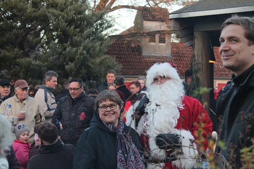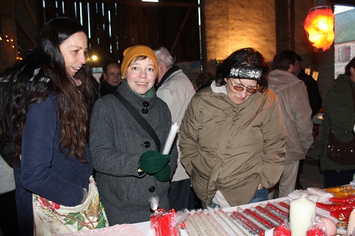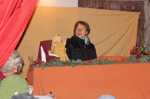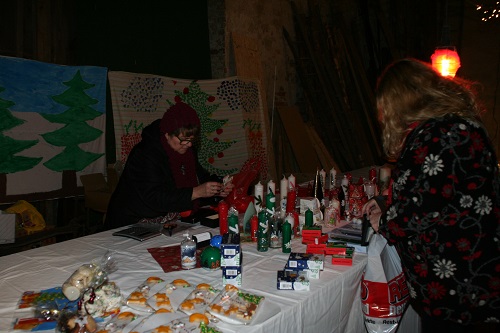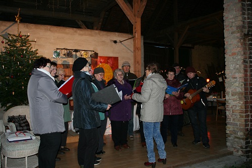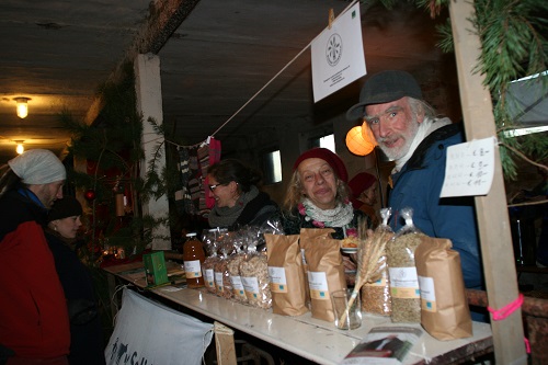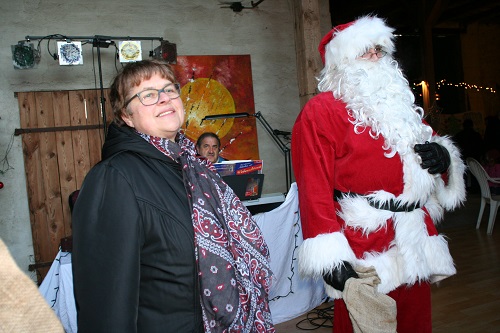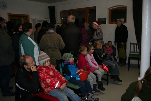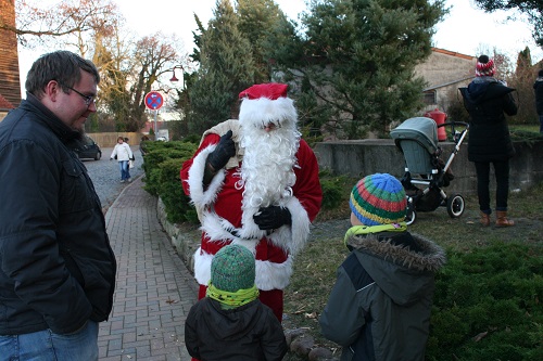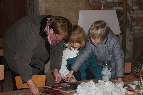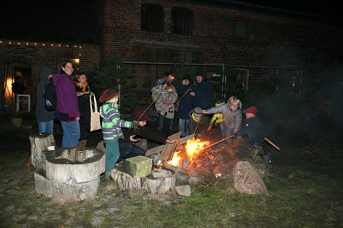 Anschließend mussten sich alle sputen, um pünktlich zur Eröffnung des Adventsmarktes wieder am Lindenplatz zu sein. Die Jagdhornbläser bliesen kräftig ins Horn, die Lichter am Weihnachtsbaum erstrahlten und die Singegemeinschaft sang passen dazu: Sind die Lichter angezündet. Dann öffnete endlich der Sensthof seine Tore. Vom Pizzaofen und den Waffelbäckerinnen der Kita strömte ein leckerer Duft, in der Scheune gab es weihnachtliches zu kaufen, auf der Bühne unterhielt Erhard Loth mit seinem Keyboard mit Weihnachtsliedern, ebenso wie die Singegemeinschaft. Der Weihnachtsmann rückte erst Süßes aus dem großen Sack heraus, wenn die Kinder ein Lied oder Gedicht zum Besten gaben. Während die Erwachsenen ihre Geldbörsen für vielerlei Dinge zückten, konnten die Kinder bei Brigitte Zabel und Jutta Brüning Weihnachtsdekorationen basteln. Auch Marion Herrmann aus Reetzerhütten merkte den herannahenden Winter. Ihre gehäkelten und gestrickten Mützen und Schals fanden reißenden Absatz. Zwischendurch konnte man Kaffee und Kuchen am OELALA Stand genießen. Die Mitglieder des Vereins sind von Anfang an dabei und kommen größtenteils aus der Hauptstadt. Inzwischen fühlen sie sich aber auch in Reetz fast heimisch. Gespannt warteten die Kinder auf die Aufführung des Görzker Puppentheaters. Den größten Andrang verzeichnete jedoch die Jugendfeuerwehr, denn dort gab es eine Tombola. „Jedes Los ein Gewinn“ priesen die Jungen und Mädchen ihre Preise an – und wurden auch fast alles los. Der Erlös kommt ihrer Arbeit und Ausbildung zu Gute. Und wem es draußen zu kalt war, der konnte im Veranstaltungsraum John und Christiane Shreve bei einer Weihnachtsgeschichte und Ronald Heber und Tamira bei Weihnachtsliedern lauschen. Ortsvorsteherin Marion Gante äußerte sich zufrieden. „Dank aller fleißigen Helfer hat alles gut geklappt“, sagt sie. „Und im nächsten Jahr feiern wir Jubiläum – den 10. Adventsmarkt.“