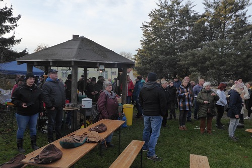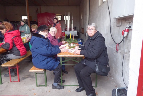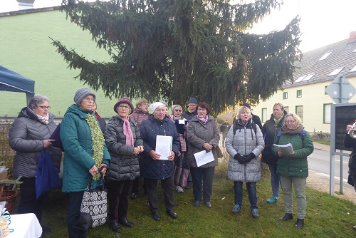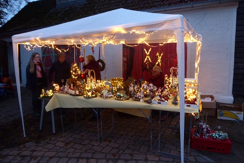 Nach zweijähriger Coronapause gab es am 1. Advent endlich wieder einen Adventsmarkt in Reetz – den nunmehr13. Diesmal lud die Reetzer Singegemeinschaft zum gemeinsamen Adventssingen in die Kirche ein. Begleitet wurde sie von Michael Hornauer an der Trompete. Die allseits bekannten Weihnachtslieder konnten alle mitsingen. Aber auch danach blieb die Kirche nicht ruhig. Erhard Loth spielte Weihnachtliches an der Orgel. Inzwischen hatten auch alle Hobbybastler ihre Stände aufgebaut. Neben vielen weihnachtlichen Dekorationen gab es auch Honig von Hobbyimker Marion Binte sowie das Reetzer Kochbuch vom Dorfverein. Offiziell eröffneten die Jagdhornbläser den Markt. Die Singegruppe sang noch einmal: Sind die Lichter angezündet. Auf das Erstrahlen der Brüning-Tanne mussten alle jedoch bis zum Dunkelwerden warten, da die Lichter mit den Straßenlaternen gekoppelt sind. So hatten alle Zeit zum Bummeln und Kaufen. Die Freiwillige Feuerwehr sorgte wieder für Gegrilltes, Glühwein und Punsch. An der Feuerschale konnten sich alle zwischendurch aufwärmen. Andrang herrschte bei den Waffelbäckern. Die Kita und Ronny Herbke buken, was das Zeug hält. 50 Eier und 5 Kilo Mehl wurden für die erste Rutsche Teig gebraucht. Aber der reichte nicht, so dass Silvia Gafert schnell nach Hause ging, um noch einmal 20 Eier zu verarbeiten. Alle fanden die Waffeln wohl ziemlich lecker. Im alten Feuerwehrhaus bastelte Anett Blasche, ihre Kollegin Janet Bartel und die Mitarbeiter der Kita „Zwergenland“ mit den Kindern Weihnachtsgestecke. „Es war viel mehr los, als in den vergangenen Jahren“, bestätigte Anett Blasche. Da war sie letztendlich froh, ihre Kollegin dabei gehabt zu haben. Die Gäste kamen nicht nur aus Reetz, sondern auch von weiter her. Der kleine aber feine Adventsmarkt hat sich also inzwischen herumgesprochen.