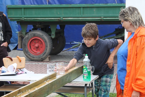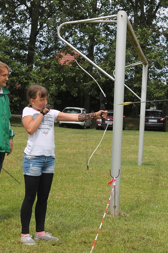 Eine Woche vor dem Reetzer Dorffest gab es für die Arbeitsgruppe Dorfveranstaltungen des Dorfvereins Pro Reetz e.V. noch einmal eine Schrecksekunde. Die ursprünglich für den Nachmittag engagierten „Bergwitzsee Musikanten“ hatten kurzfristig krankheitsbedingt abgesagt. Ersatz musste her. Ortschefin Marion Gante nahm Kontakt zum Jugendblasorchester Wiesenburg auf und hatte Glück. Die Musiker unter Leitung von Horst Bendyk sprangen in die Bresche. So war die Blasmusik zu Kaffee und Kuchen gerettet. Letzterer wurde dann auch bis auf das letzte Stück vertilgt. Während das meist ältere Publikum der Blasmusik lauschte, betätigten sich die anderen sportlich. Man konnte seine Geschicklichkeit und sein Tempo unter Beweis stellen. Erstmals dabei war ein Wettbewerb im Bogen schießen. Die meisten stellten fest, dass es gar nicht so einfach ist, Robin Hood zu spielen. Denn was im Film so einfach aussieht, braucht doch eine Menge an Geschick. Ebenso beim Büchsen werfen. Da trafen eher die Kleinsten am besten, denn da war die Kraft des Wurfes nicht ausschlaggebend. So siegte dort bei den Erwachsenen auch die über 70 jährige Helga Haseloff, die einen durchaus erlaubten Trick anwandte – sie warf von unten! Die Höchstpunktzahl von 100 erreichten zwei Kinder: Jessica Friedrich und Stella Bolz. Auch ein bisschen Nass von oben hielt die Anwesenden nicht davon ab, an den Wettbewerben teilzunehmen. Und bei der Feuerwehr gab es eh Wasser. Dort konnte man sich im Löschen üben in einer ähnlichen Disziplin, wie sie auch in Wettkämpfen zu absolvieren ist. Nur der Eismann hatte nicht ganz soviel zu tun, aber trotz der nicht so heißen Temperaturen hatten viele Appetit auf eine Tüte. „Besser so als wie im letzten Jahr“ hörte man oft, da herrschten nämlich Temperaturen von 36 Grad und mehr. Inzwischen konnte man sich im Festzelt am Programm der Reetzer Singegemeinschaft und der Kita „Zwergenland“ erfreuen. Die Line Dancer bildeten den Abschluss des Nachmittagsprogramms. Ihre Vorführung war so ansteckend, das viele der Kinder sich sofort einreihten und mitmachten. Und dann wartete natürlich alles auf die Auswertung der Wettbewerbe, denn schließlich gab es Preise zu gewinnen. Der Tag sollte mit Tanzmusik ausklingen. Da hatte man aber die Rechnung ohne König Fußball gemacht. So waren die ersten beiden Stunden nur wenige beim Tanz, was sich aber nach dem Sieg unserer Nationalelf schlagartig änderte. Und auch auf den nächsten Tag überschwappte. Nach dem traditionellen Gottesdienst, musikalisch begleitet von Erhard Loth, warteten alle gespannt auf das Spiel der „Alten Herren“ gegen die Reetzer Jugendlichen, die mit Tanja Lehmann erstmals ein Mädchen mit dabei hatten. Anscheinend war das Spiel des Vorabends ansteckend. Nach regulärer Spielzeit stand es 3:3 und auch hier fiel die Entscheidung im 9 Meter Schießen (auf Grund des kleineren Spielfeldes). In diesem Jahr hatte die Jugend die Nase vorn.