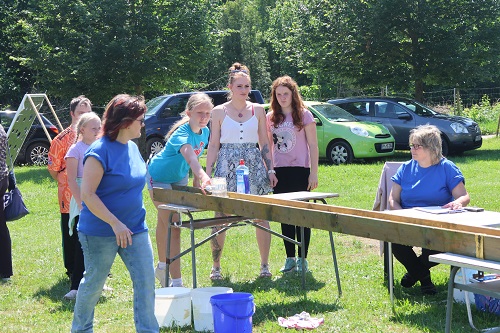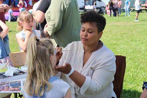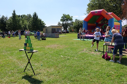 Aber am Samstag wurde erst einmal ausgiebig gefeiert. Am Nachmittag konnten wieder alle an der Dorfwettbewerben teilnehmen, sei es Bierglas schieben, Büchsen werfen, Nageln oder Kisten klettern. Familie Binte hatte wieder ein neu gebautes Spiel mitgebracht, bei dem farbige Kugeln in dafür vorgesehene Öffnungen jongliert werden mussten. Aber auch am Reetzer Mühlrad konnten sich alle probieren. Das war das erste Spiel, was sich die Familie ausgedacht hatte. Neu dabei war das Kinderschminken. Terah Weleba und Angela Mohaupt hatten sich erstmals damit eingebracht. Und die Kinder standen Schlange, um sich in zauberhafte Wesen zu verwandeln. Im Zelt sorgte Martin Zimmermann aus Zerbst wieder für Stimmung. Der Entertainer war schon im vergangenen Jahr Gast und wird es auch im nächsten Jahr wieder sein, denn das Publikum war wieder total begeistert. „Zimmi“ weiß inzwischen auch, dass er in Reetz variabel sein muss, denn auch Kita, Singegruppe und Line Dancer hatten ihren Auftritt. Und natürlich wurde auch wieder Fußball gespielt. Und das fast EM reif, denn die alten Herren putzten die Jugend buchstäblich vom Feld. Außerdem gab es Rundfahrten mit dem Feuerwehrauto und Ponyreiten mit Familie Bergmann und Hopseburgen für die Jüngsten. Gespannt warteten alle auf die Siegerehrung für die Wettbewerbe, denn es gab natürlich auch wieder kleine Preise.
