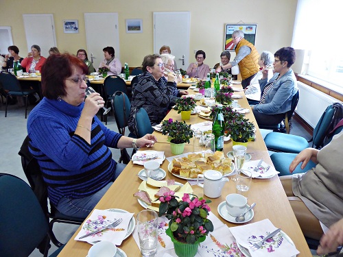 Ob die Stühle wohl reichen? Das fragten sich die fleißigen Helfer beim Eindecken für die traditionelle Frauentagsfeier in Reetz. Jedes Jahr laden Ortsbeirat und Dorfverein die Frauen und Mädchen zu ein paar gemütlichen Stunden bei Kaffee, Kuchen und Sekt ein. Besonders gefreut haben sich alle, dass in diesem Jahr nicht nur die Älteren, sondern auch viele junge Frauen dabei waren. So konnte man sich näher kennenlernen und ausgiebig schwatzen. Gemeinsam mit der Reetzer Singegruppe wurden Frühlingslieder gesungen. Leiterin Renate Friedrich versäumte die Chance nicht, in diesem Rahmen für Nachwuchs für den kleinen Chor zu werben. Zur Begrüßung gab es für alle Gäste eine wunderschöne Azalee aus der Gärtnerei Köhler. Auch dieser Blumengruß hat inzwischen Tradition. Die Stimmung war super und am späteren Nachmittag wurde auch das Tanzbein geschwungen. Damit alle Frauen feiern konnten, hatte sich Claus Wichmann bereit erklärt, sowohl beim Bedienen als auch beim Abwasch tatkräftig zu unterstützen. Dafür von allen Frauen und Mädchen ein herzliches Dankeschön.