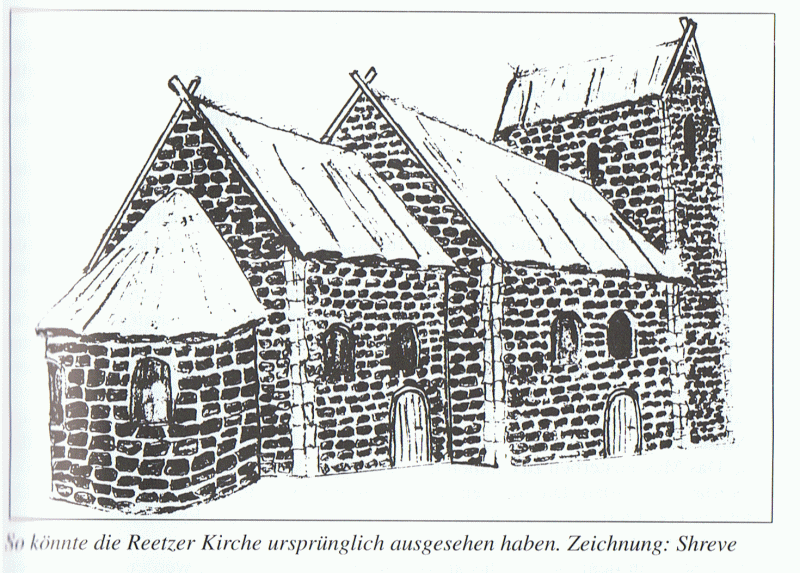 der Reetzer Kirche aussah, aber Schindeldeckungen und Rohrdächer waren zu jener
