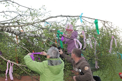 banden bunte Schleifen an die Maie,