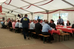 gratulierten vor etwa 150 geladenen Gästen. 15 Kameraden wurden im Rahmen der