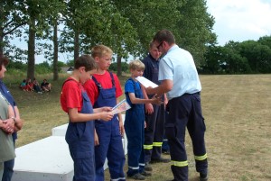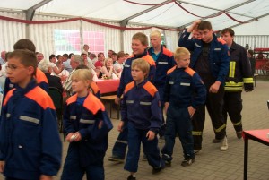 Sonntag eine Festveranstaltung. Die Kinderfeuerwehr stellte auf lustige Weise