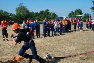 Siegerehrung ein Feuerwehrauto mit Sirene näherte, waren alle Anwesenden etwas
