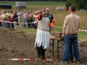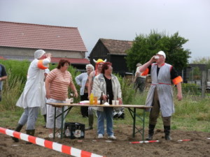 wurde paarweise in lustiger Verkleidung mit einem Schluck Bier als