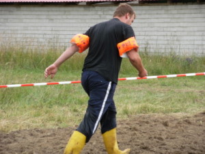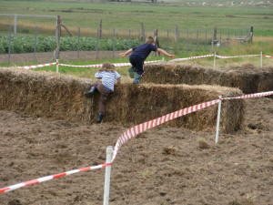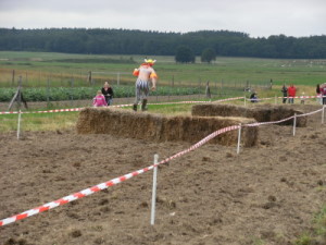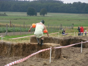 „Starthilfe“ , um die aufgebauten Hindernisse – Strohballen, Wassergraben