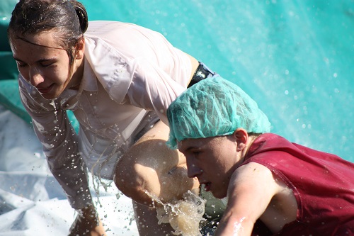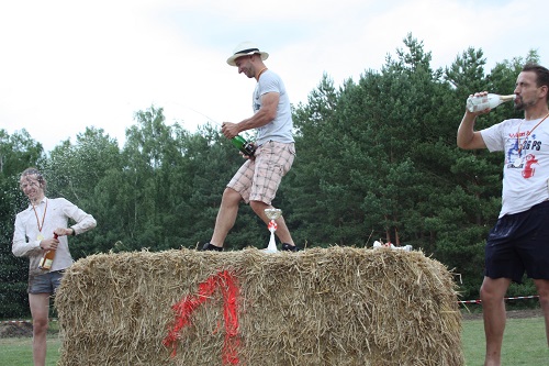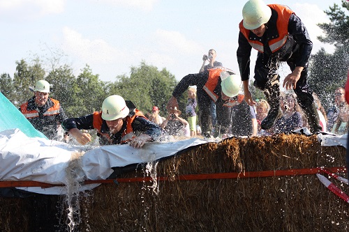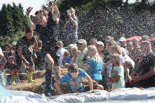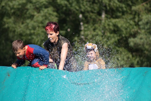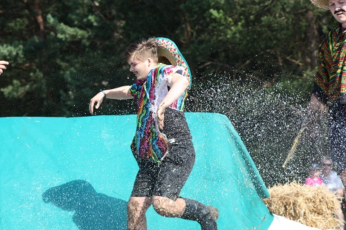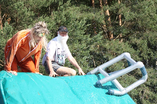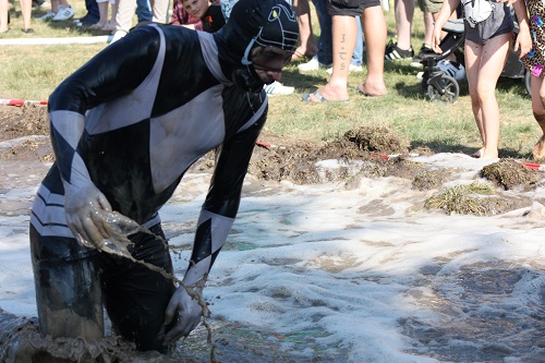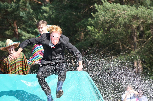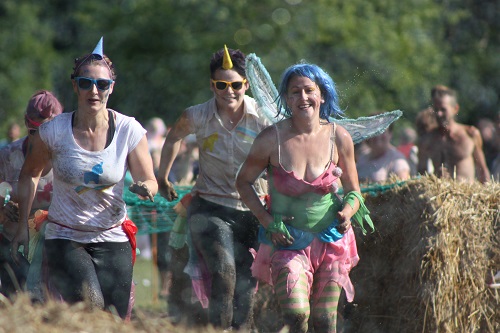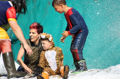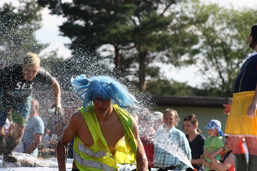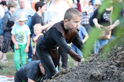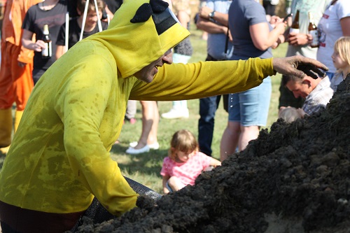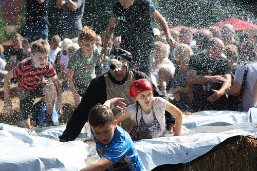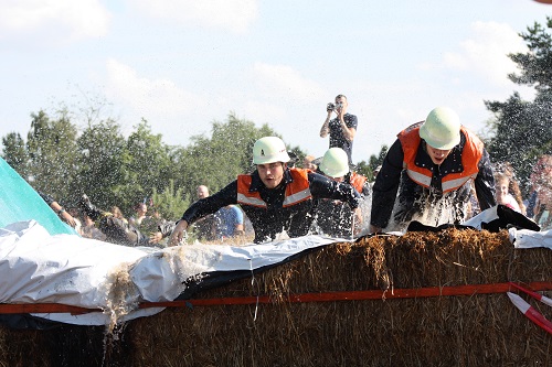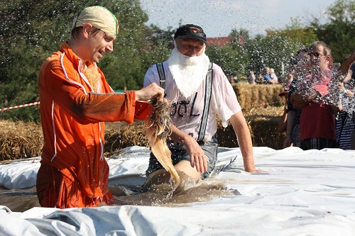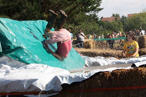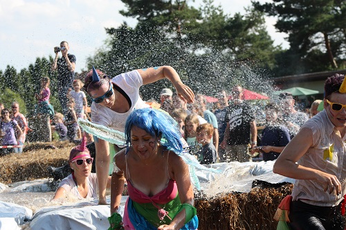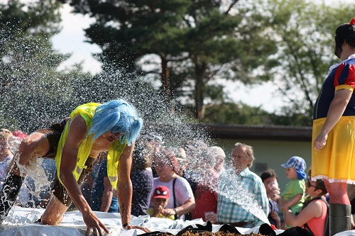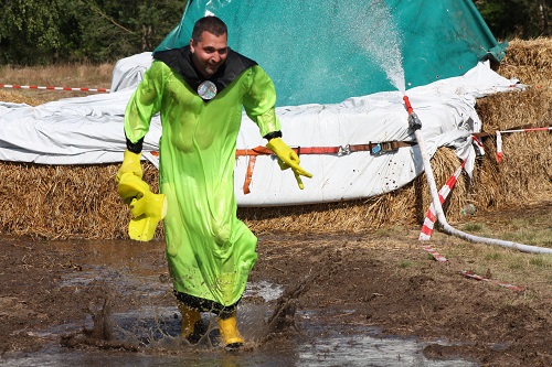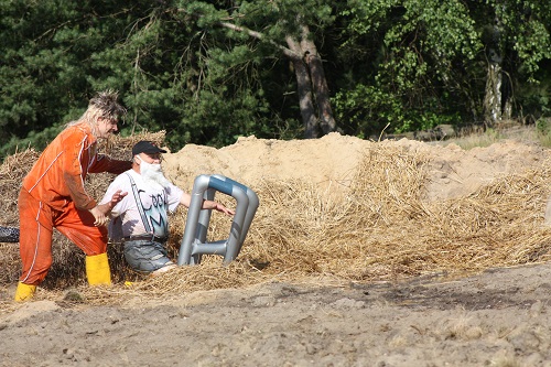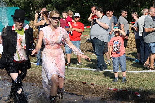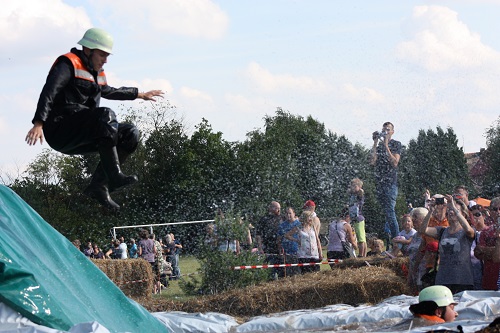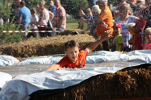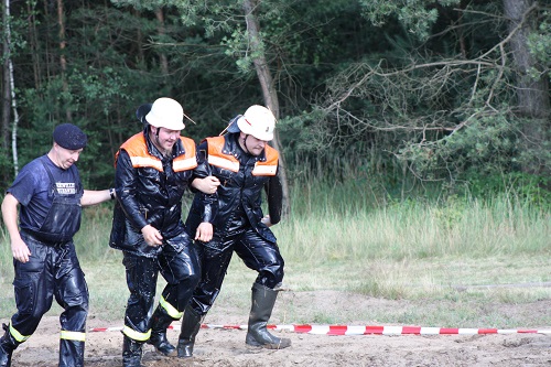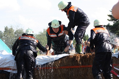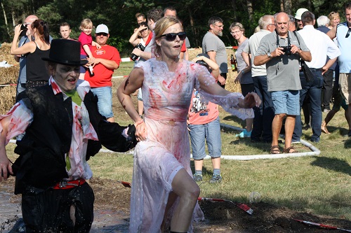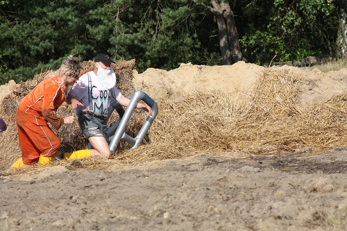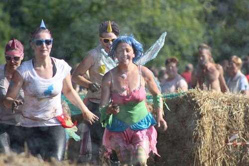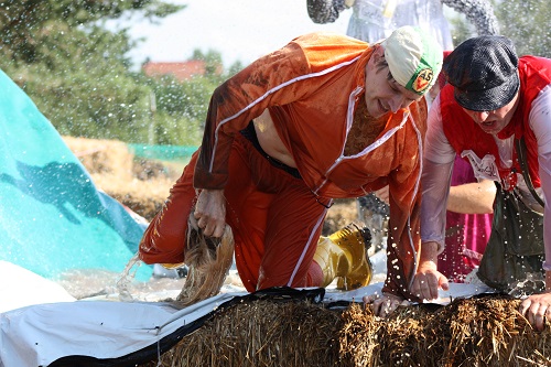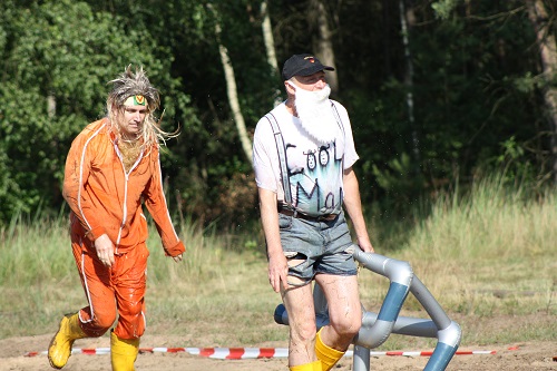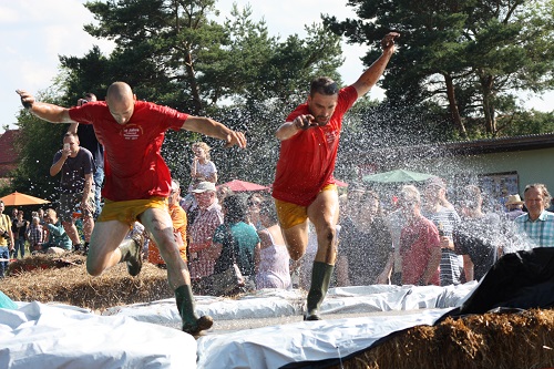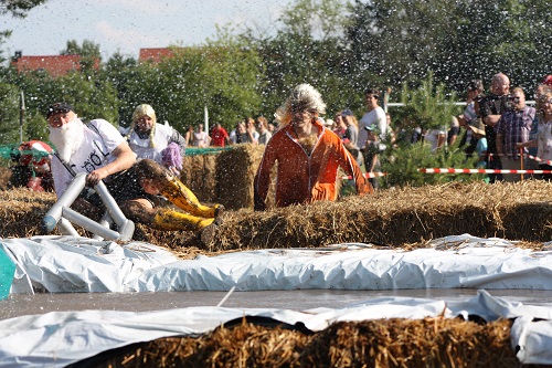 Sich dreckig machen, ohne dass gleich jemand schimpft, ist wohl der Traum eines jeden Kindes. Beim Ackerlauf in Reetzerhütten am vergangenen Wochenende wurde dieser Wirklichkeit. Während die anderen Starter sich noch durch den Parcours quälten, matschten die Kinder fröhlich an den Wasserlöchern herum. Da dankte wohl so manche Mutter insgeheim dem Erfinder der Waschmaschine. 66 lustig verkleidete Teilnehmer gingen an den Start und boten den zahlreichen Zuschauern ein tolles Spektakel. Und das soll das letzte Mal gewesen sein? Diese Gerüchte kamen schon bei den Vorbereitungen auf. Alle hoffen jedoch, dass es sich die Organisatoren doch noch einmal überlegen und weiter machen. Viele wären auch bereit, einen symbolischen Euro als Eintritt zu bezahlen. Der gesamte Lauf dauerte diesmal mehr als 2 Stunden. Es waren tolle Verkleidungen dabei, Einhörner, Zwerge, Elfen, die Power Ranger, Schlumpfine und Gagamehl, die Minions, ein ganzer Zoo und viel Fantasy. Vom G20 Gipfel war sogar „Donald Trump“ angereist. Dieser hatte einige Mexikaner mitgebracht mit einem Teil der geplanten Mauer. Jedoch musste er sich mit unerwartet hartem Widerstand auseinandersetzen. Im letzten Wasserbecken ging dann seine Maske verloren. Gespannt warteten alle jedoch auf das Aufeinandertreffen von Marco Beckendorf, Bürgermeister der Gemeinde Wiesenburg/Mark, und Klaus-Peter Klenke, Ortsvorsteher in Reetzerhütten. Beide hatten im vergangenen Jahr sozusagen eine große Klappe riskiert. „Das können wir auch“, ließen sie verlauten, nichtsahnend, dass diese Worte von „Spionen“ im Gedächtnis aufgezeichnet wurden. Also hieß es in diesem Jahr: mitmachen oder als Feigling gelten. Beide erhielten eine schriftliche Einladung. Auf dem Dorffest vor 2 Wochen wurde diese öffentlich angenommen. Nun gab es kein Zurück mehr. Während sich Klaus- Peter Klenke unter dem Motto:“It´s Cool Man“ mit Rauschebart, Sonnenbrille und aufblasbarer Gehhilfe auf die Strecke machte, verkörperte Marco Beckendorf mit Vokuhila – Perücke und Kofferradio sein jüngeres Pendant. „Es war ganz schön anstrengend“, so beide am Ziel. Am Ende hatte Klenke eine Nasenspitze Vorsprung. Die Zeit von 3:20 ist allerdings noch verbesserungswürdig, meinten beide. Und vielleicht gibt es ja eine Revanche. Nachdem als letzte Starter das Brautpaar, mit Schnäpschenpause auf der Wasserrutsche, endlich im Ziel war, warteten alle gespannt auf die Siegerehrung und die speziellen Pokale. Denn schließlich war es das 10 jährige Jubiläum des Ackerlaufs. Was einst aus einer Wette entstand, hat sich zu einem überregionalen Spektakel gemausert. Das Siegerpodest war jedoch mit Tim Fröhlich und Dario Scheibel von den Vorjahressiegern besetzt. . Als schnellste Frau ging Kim Süßmilch durchs Ziel. Der beste Starter über 40 war Markus Eggert, der älteste Peter Woitas. Für das beste Kostüm bekamen die Jungs der Reetzer Feuerwehr einen Pokal. Nachwuchssorgen haben die Ackerläufer keine. Die Jüngste war Elena Kozikat mit 2 ½ Jahren.
