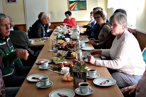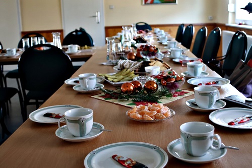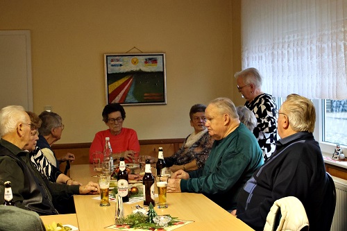 So könnte man die Seniorenweihnachtsfeier der Rentner in Reetz bezeichnen. Eingeladen hatten Ortsbeirat und Dorfverein, letzterer sorgte auch für die Finanzierung. Bei Kaffee, Stollen und Weihnachtsgebäck ließen es sich alle gut gehen. Eva Loth, Vorsitzende des Dorfvereins, bedachte einige der aktiven Helfer bei den vielen Aktionen im Ort mit einem kleinen Dankeschön. Nach dem Kaffeetrinken sorgte die Reetzer Singegruppe mit Weihnachtsliedern für vorweihnachtliche Stimmung. Ortsvorsteher Sebastian Kube kam jobbedingt etwas später. Er hatte beim Aufräumen einen kleinen Schatz gefunden - eine ganze Tüte voller alter Fotos aus der Karnevalszeit. Die wurden nun erst einmal ausgiebig betrachtet. Helmut Jakobi, selbst ein Urgestein des Reetzer Karnevals nahm die Situation zum Anlass, Teile seiner ersten Büttenrede vorzutragen. Ein Genuss für alle Anwesenden.