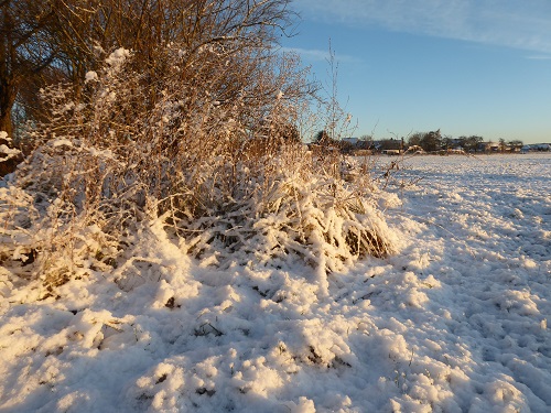 Es ist ein bisschen Schnee gefallen und bei Temperaturen von Minus 8 Grad hat er die Landschaft in weiß getaucht.