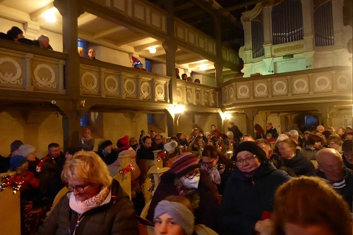 Es war ein relativ kurzer, familienfreundlicher Gottesdienst. Die Kinder begrüßten die Gäste am Eingang der Kirche und verteilten die Liedhefte. Es wurden gemeinsam Weihnachtslieder gesungen. Mit Begeisterung waren die Kinder beim Krippenspiel dabei. Die Reetzer Kirche war sehr gut besucht, auch die Emporen waren besetzt. Kurz vor Ende verteilten die Kinder Friedenslichter an die Anwesenden. Diese spielten auch eine Rolle in der Fürbitte, besonders vor dem Hintergrund der Kriegsschauplätze auf der Welt. Mit dieser schönen halben Stunde konnten sich alle auf den Heiligen Abend und die Bescherung einstimmen.