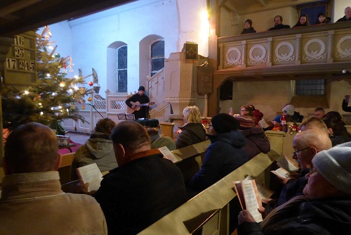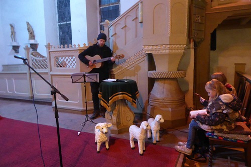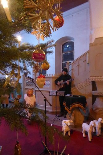 Sie hatte mit den Kindern der Kinderkirche ein selbstgeschriebenes (amüsantes) Krippenspiel eingeübt und konnte den Neu-Reetzer Musikschullehrer Michael Hornauer für die musikalische Begleitung gewinnen.