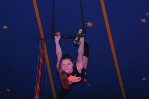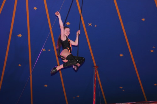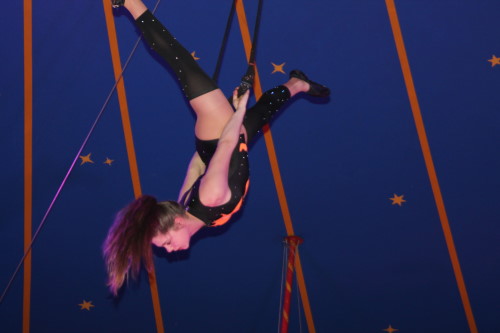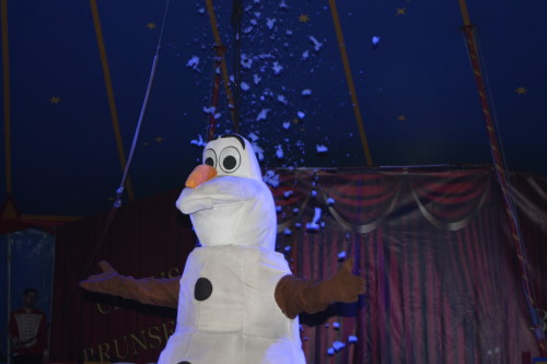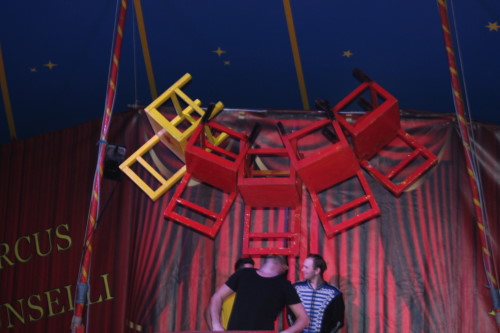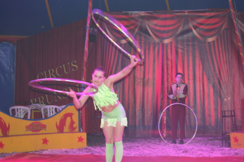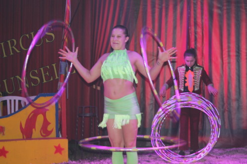 Früh übt sich, was ein Meister werden will. Im kleinen Zirkus Brunselli sind schon die Jüngsten mit in der Manege, wie der kleine Manson. Er ist gerade einmal 14 Monate alt, hat aber sichtlich seinen Spaß. In seiner Aufführung werden die Gäste in eine zauberhafte Märchenwelt entführt. Zu dieser gehören neben den Tieren und Akrobaten auch Märchenfiguren wie Elsa und Olaf und Einhörner. Staunend bewunderte das Publikum die Luftkünstler unter dem Zeltdach und belohnten sie mit viel Beifall. Durch das Programm führte in lockerer Art der Herr des Hauses – bzw. des Zeltes. Obwohl er das nicht von Anfang an war. Aus Liebe kam er zu dem Job, denn nachdem er einmal Zirkusluft geschnuppert hatte, wollte René Brunssen nie wieder etwas anderes machen. Dort hatte er nämlich seine Frau Manuela Kaselowsky kennengelernt. Sie gehört zu einem kleinen Familienzirkus und er war sofort verliebt – und begeistert. Nun sind die beiden seit 25 Jahren zusammen und touren mit dem kleinen Zirkus „Brunselli“ durch Deutschland. Den Zirkus gibt es inzwischen in der 7. Generation. Inzwischen gehören sieben Kinder, deren Partner und schon Enkelkinder dazu. „Wir Kinder sind da hineingewachsen“ erzählt Madeleine Kaselowsky. Sie ist mit ihren Geschwistern Teil der Aufführungen. Die 23 jährige hat eine Artistenschule besucht, zeigt Luftnummern mit Tüchern und Ringen, ist aber auch für die Requisiten zuständig. Die Brüder waren anfangs voll begeistern vom Trampolin springen. Das hatte sie bei Onkel und Tante gesehen, die ebenfalls einen Zirkus haben. Das wollten sie auch machen.