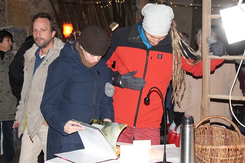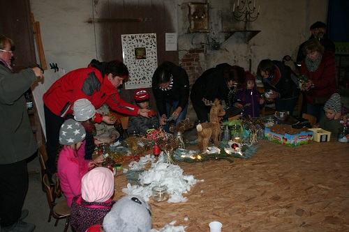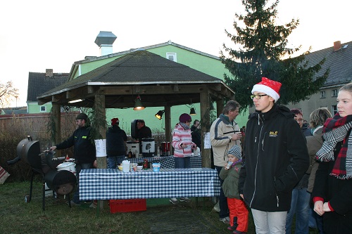 Anschließend mussten sich alle sputen, um pünktlich zur Eröffnung des Adventsmarktes wieder am Lindenplatz zu sein. Die Jagdhornbläser bliesen kräftig ins Horn, die Lichter am Weihnachtsbaum erstrahlten und die Singegemeinschaft sang passen dazu: Sind die Lichter angezündet. Dann öffnete endlich der Sensthof seine Tore. Vom Pizzaofen und den Waffelbäckerinnen der Kita strömte ein leckerer Duft, in der Scheune gab es weihnachtliches zu kaufen, auf der Bühne unterhielt Erhard Loth mit seinem Keyboard mit Weihnachtsliedern, ebenso wie die Singegemeinschaft. Der Weihnachtsmann rückte erst Süßes aus dem großen Sack heraus, wenn die Kinder ein Lied oder Gedicht zum Besten gaben. Während die Erwachsenen ihre Geldbörsen für vielerlei Dinge zückten, konnten die Kinder bei Brigitte Zabel und Jutta Brüning Weihnachtsdekorationen basteln. Auch Marion Herrmann aus Reetzerhütten merkte den herannahenden Winter. Ihre gehäkelten und gestrickten Mützen und Schals fanden reißenden Absatz. Zwischendurch konnte man Kaffee und Kuchen am OELALA Stand genießen. Die Mitglieder des Vereins sind von Anfang an dabei und kommen größtenteils aus der Hauptstadt. Inzwischen fühlen sie sich aber auch in Reetz fast heimisch. Gespannt warteten die Kinder auf die Aufführung des Görzker Puppentheaters. Den größten Andrang verzeichnete jedoch die Jugendfeuerwehr, denn dort gab es eine Tombola. „Jedes Los ein Gewinn“ priesen die Jungen und Mädchen ihre Preise an – und wurden auch fast alles los. Der Erlös kommt ihrer Arbeit und Ausbildung zu Gute. Und wem es draußen zu kalt war, der konnte im Veranstaltungsraum John und Christiane Shreve bei einer Weihnachtsgeschichte und Ronald Heber und Tamira bei Weihnachtsliedern lauschen. Ortsvorsteherin Marion Gante äußerte sich zufrieden. „Dank aller fleißigen Helfer hat alles gut geklappt“, sagt sie. „Und im nächsten Jahr feiern wir Jubiläum – den 10. Adventsmarkt.“