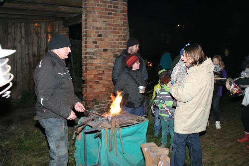 Die Temperaturen am 1. Advent waren jedenfalls schon mal glühweinverdächtig. Das merkten auch die Kameraden der Freiwilligen Feuerwehr und des Feuerwehrvereins an ihrem Stand auf dem diesjährigen Reetzer Adventsmarkt. Die Schlangen wollten einfach nicht abnehmen. Und das schon am Nachmittag, denn der begann wie in jedem Jahr mit dem Adventssingen in der Kirche. Der Wiesenburger Chor sang Weihnachtslieder und Pfarrer Stephan Schönfeld las eine berührende Weihnachtsgeschichte. Zum Aufwärmen bei Kaffee und Kuchen ging es anschließend in das Gemeindehaus. Der etwas andere Ablauf hatte in diesem Jahr einen besonderen Grund. Der Dorfverein Pro Reetz e.V. öffnete erstmals die Tür zur Heimatstube. Dort hatten die Vereinsmitglieder in den vergangenen Wochen fleißig gewerkelt. Mit Fördermitteln der LAG wurde renoviert, Mobiliar angeschafft und gestaltet. Die Idee dazu ist schon älter, da von der Ausstellung zur 850 Jahrfeier viel Material übrig geblieben war. Ein Teil davon ist jetzt zu sehen. Auch wenn noch nicht alles fertig ist, freute sich der Verein über das große Interesse der Bürger, die zahlreich zur Eröffnung gekommen waren. Die Reetzer Singegemeinschaft gab einige Lieder zum Besten, der Verein OELALA spendierte den Sekt. Über eines seiner Projekte fertigten Reetzer Einwohner Tonfliesen an, von denen ein Teil jetzt an der Fassade der Heimatstube zu sehen ist.