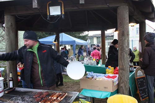 Nach zweijähriger Coronapause gab es am 1. Advent endlich wieder einen Adventsmarkt in Reetz – den nunmehr13. Diesmal lud die Reetzer Singegemeinschaft zum gemeinsamen Adventssingen in die Kirche ein. Begleitet wurde sie von Michael Hornauer an der Trompete. Die allseits bekannten Weihnachtslieder konnten alle mitsingen. Aber auch danach blieb die Kirche nicht ruhig. Erhard Loth spielte Weihnachtliches an der Orgel. Inzwischen hatten auch alle Hobbybastler ihre Stände aufgebaut. Neben vielen weihnachtlichen Dekorationen gab es auch Honig von Hobbyimker Marion Binte sowie das Reetzer Kochbuch vom Dorfverein. Offiziell eröffneten die Jagdhornbläser den Markt. Die Singegruppe sang noch einmal: Sind die Lichter angezündet. Auf das Erstrahlen der Brüning-Tanne mussten alle jedoch bis zum Dunkelwerden warten, da die Lichter mit den Straßenlaternen gekoppelt sind. So hatten alle Zeit zum Bummeln und Kaufen. Die Freiwillige Feuerwehr sorgte wieder für Gegrilltes, Glühwein und Punsch. An der Feuerschale konnten sich alle zwischendurch aufwärmen. Andrang herrschte bei den Waffelbäckern. Die Kita und Ronny Herbke buken, was das Zeug hält. 50 Eier und 5 Kilo Mehl wurden für die erste Rutsche Teig gebraucht. Aber der reichte nicht, so dass Silvia Gafert schnell nach Hause ging, um noch einmal 20 Eier zu verarbeiten. Alle fanden die Waffeln wohl ziemlich lecker. Im alten Feuerwehrhaus bastelte Anett Blasche, ihre Kollegin Janet Bartel und die Mitarbeiter der Kita „Zwergenland“ mit den Kindern Weihnachtsgestecke. „Es war viel mehr los, als in den vergangenen Jahren“, bestätigte Anett Blasche. Da war sie letztendlich froh, ihre Kollegin dabei gehabt zu haben. Die Gäste kamen nicht nur aus Reetz, sondern auch von weiter her. Der kleine aber feine Adventsmarkt hat sich also inzwischen herumgesprochen.