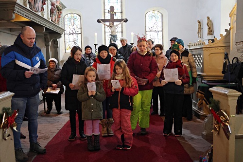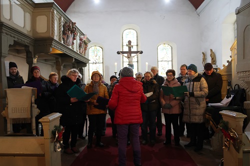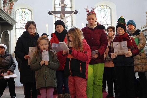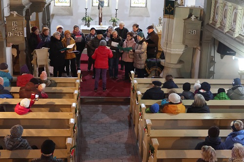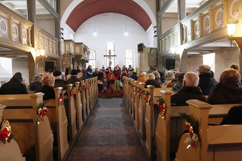 Traditionell begann der Nachmittag mit dem Adventssingen in der Kirche. Die Reetzer Singegruppe hatte wieder viele Lieder zum Mitsingen im Gepäck. Erstmals dabei waren die Kinder des Kinderkirchenkreises unter Leitung von Florian Jakubowski. Trotz der Kälte war die Kirche sehr gut besucht. Nach dem gemeinsamen Singen spielte Erhard Loth den Nachmittag über an der Orgel und wer Lust hatte, konnte den Klängen lauschen. Der Vorraum der Kirche war festlich geschmückt. Günter Laengner sorgte wieder für eine wunderschöne Tanne, die Uwe Friedrich dann in den Ständer bringen musste. Für das Schmücken waren Ilka Iversen, Doritt Volkmann, Silke Köpernick und Elsa Hoffmann zuständig.