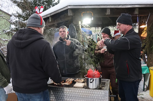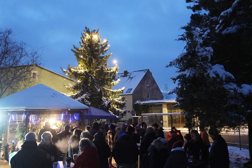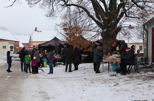 Der Adventsmarkt fand nun schon zum 14. Mal statt, seit einigen Jahren auf dem Lindenplatz in der Dorfmitte. Feuerwehr, Dorfverein und Ortsbeirat arbeiten jedes Jahr gut zusammen, so dass alles wunderbar klappt. Während die Feuerwehr sich um Versorgung und Licht kümmert, organisieren Dorfverein und Ortsbeirat das „Drumherum“. Die Straße war durch die Gemeinde abgesperrt, Wolfgang Eilert, Leiter des Bauhofs, kam sogar am Sonntagvormittag, um Stromverteiler zu bringen. Schon einige Tage vorher hatte der Bauhof die Lichterkette an der großen Tanne angebracht.