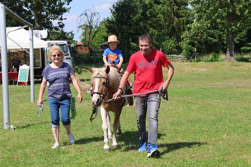 Aber am Samstag wurde erst einmal ausgiebig gefeiert. Am Nachmittag konnten wieder alle an der Dorfwettbewerben teilnehmen, sei es Bierglas schieben, Büchsen werfen, Nageln oder Kisten klettern. Familie Binte hatte wieder ein neu gebautes Spiel mitgebracht, bei dem farbige Kugeln in dafür vorgesehene Öffnungen jongliert werden mussten. Aber auch am Reetzer Mühlrad konnten sich alle probieren. Das war das erste Spiel, was sich die Familie ausgedacht hatte. Neu dabei war das Kinderschminken. Terah Weleba und Angela Mohaupt hatten sich erstmals damit eingebracht. Und die Kinder standen Schlange, um sich in zauberhafte Wesen zu verwandeln. Im Zelt sorgte Martin Zimmermann aus Zerbst wieder für Stimmung. Der Entertainer war schon im vergangenen Jahr Gast und wird es auch im nächsten Jahr wieder sein, denn das Publikum war wieder total begeistert. „Zimmi“ weiß inzwischen auch, dass er in Reetz variabel sein muss, denn auch Kita, Singegruppe und Line Dancer hatten ihren Auftritt. Und natürlich wurde auch wieder Fußball gespielt. Und das fast EM reif, denn die alten Herren putzten die Jugend buchstäblich vom Feld. Außerdem gab es Rundfahrten mit dem Feuerwehrauto und Ponyreiten mit Familie Bergmann und Hopseburgen für die Jüngsten. Gespannt warteten alle auf die Siegerehrung für die Wettbewerbe, denn es gab natürlich auch wieder kleine Preise.