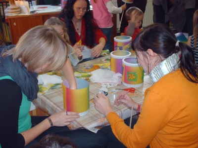 unseren Eltern bereiteten wir es vor. In einem Raum bastelten wir Laternen. In