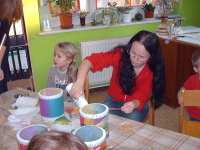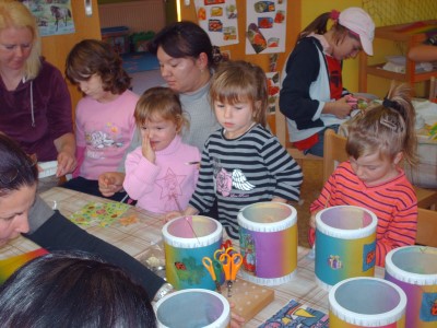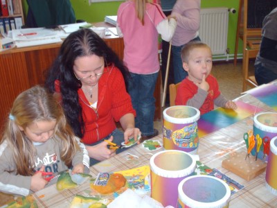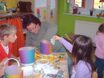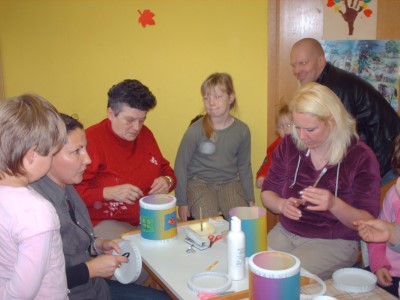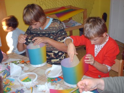 fleißig an den Laternen gebastelt, natürlich mit Hilfe der Muttis, Vatis und