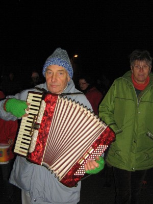 von Helmut Moritz mit seinem Akkordeon durch Reetz. Bereits am Nachmittag wurde