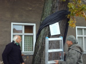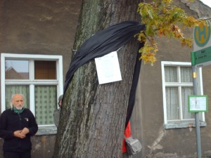 „Trauerzeremonie“. Die Friedenseiche, an der erst vor einem Jahr zum 1.