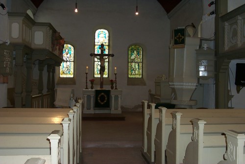 Westseite des Innenraumes der aus dem Mittelalter stammenden und für ein Dorf