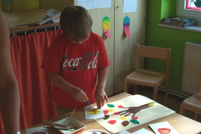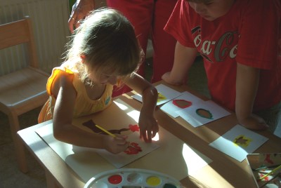 Herbst streckt seine Fühler aus und die Kinder malen Bäume mit buntem Laub.