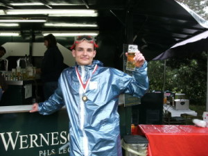 wurde paarweise in lustiger Verkleidung mit einem Schluck Bier als