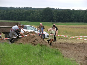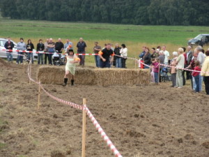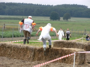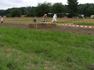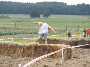 „Starthilfe“ , um die aufgebauten Hindernisse – Strohballen, Wassergraben