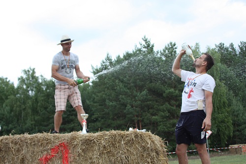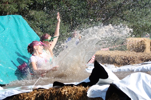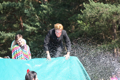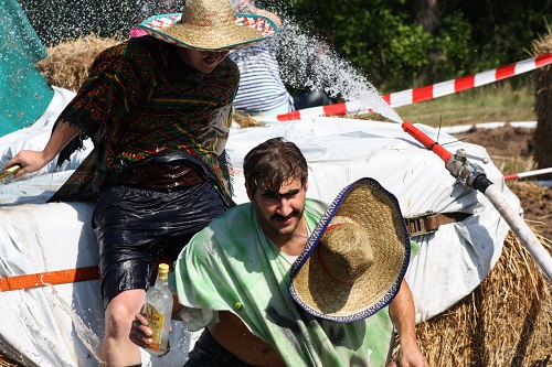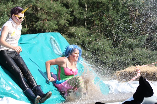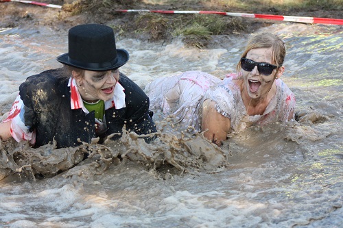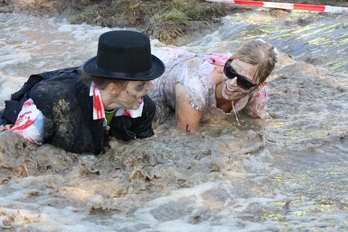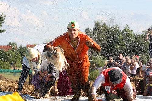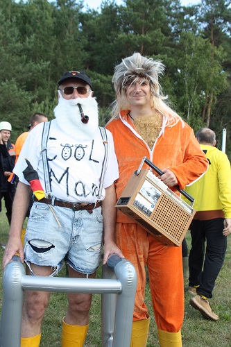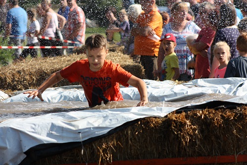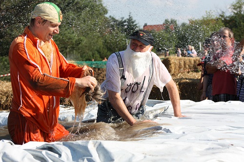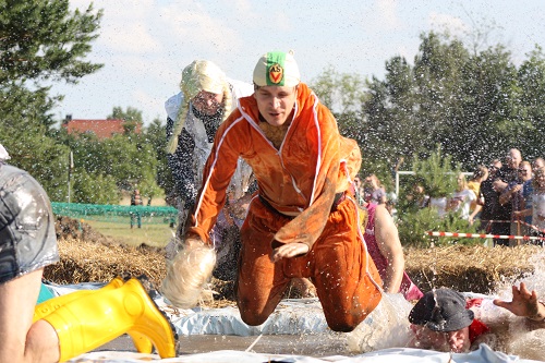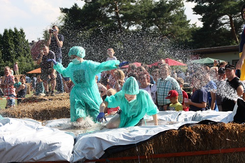 Sich dreckig machen, ohne dass gleich jemand schimpft, ist wohl der Traum eines jeden Kindes. Beim Ackerlauf in Reetzerhütten am vergangenen Wochenende wurde dieser Wirklichkeit. Während die anderen Starter sich noch durch den Parcours quälten, matschten die Kinder fröhlich an den Wasserlöchern herum. Da dankte wohl so manche Mutter insgeheim dem Erfinder der Waschmaschine. 66 lustig verkleidete Teilnehmer gingen an den Start und boten den zahlreichen Zuschauern ein tolles Spektakel. Und das soll das letzte Mal gewesen sein? Diese Gerüchte kamen schon bei den Vorbereitungen auf. Alle hoffen jedoch, dass es sich die Organisatoren doch noch einmal überlegen und weiter machen. Viele wären auch bereit, einen symbolischen Euro als Eintritt zu bezahlen. Der gesamte Lauf dauerte diesmal mehr als 2 Stunden. Es waren tolle Verkleidungen dabei, Einhörner, Zwerge, Elfen, die Power Ranger, Schlumpfine und Gagamehl, die Minions, ein ganzer Zoo und viel Fantasy. Vom G20 Gipfel war sogar „Donald Trump“ angereist. Dieser hatte einige Mexikaner mitgebracht mit einem Teil der geplanten Mauer. Jedoch musste er sich mit unerwartet hartem Widerstand auseinandersetzen. Im letzten Wasserbecken ging dann seine Maske verloren. Gespannt warteten alle jedoch auf das Aufeinandertreffen von Marco Beckendorf, Bürgermeister der Gemeinde Wiesenburg/Mark, und Klaus-Peter Klenke, Ortsvorsteher in Reetzerhütten. Beide hatten im vergangenen Jahr sozusagen eine große Klappe riskiert. „Das können wir auch“, ließen sie verlauten, nichtsahnend, dass diese Worte von „Spionen“ im Gedächtnis aufgezeichnet wurden. Also hieß es in diesem Jahr: mitmachen oder als Feigling gelten. Beide erhielten eine schriftliche Einladung. Auf dem Dorffest vor 2 Wochen wurde diese öffentlich angenommen. Nun gab es kein Zurück mehr. Während sich Klaus- Peter Klenke unter dem Motto:“It´s Cool Man“ mit Rauschebart, Sonnenbrille und aufblasbarer Gehhilfe auf die Strecke machte, verkörperte Marco Beckendorf mit Vokuhila – Perücke und Kofferradio sein jüngeres Pendant. „Es war ganz schön anstrengend“, so beide am Ziel. Am Ende hatte Klenke eine Nasenspitze Vorsprung. Die Zeit von 3:20 ist allerdings noch verbesserungswürdig, meinten beide. Und vielleicht gibt es ja eine Revanche. Nachdem als letzte Starter das Brautpaar, mit Schnäpschenpause auf der Wasserrutsche, endlich im Ziel war, warteten alle gespannt auf die Siegerehrung und die speziellen Pokale. Denn schließlich war es das 10 jährige Jubiläum des Ackerlaufs. Was einst aus einer Wette entstand, hat sich zu einem überregionalen Spektakel gemausert. Das Siegerpodest war jedoch mit Tim Fröhlich und Dario Scheibel von den Vorjahressiegern besetzt. . Als schnellste Frau ging Kim Süßmilch durchs Ziel. Der beste Starter über 40 war Markus Eggert, der älteste Peter Woitas. Für das beste Kostüm bekamen die Jungs der Reetzer Feuerwehr einen Pokal. Nachwuchssorgen haben die Ackerläufer keine. Die Jüngste war Elena Kozikat mit 2 ½ Jahren.