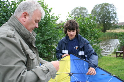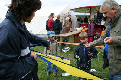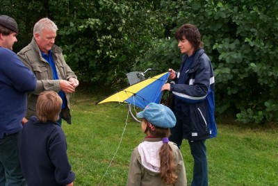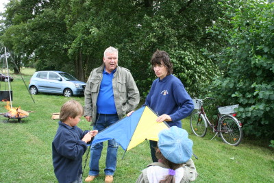 Brinkhoff bauten mit Hilfe ihrer Eltern ihre Drachen zusammen und ließen sie