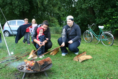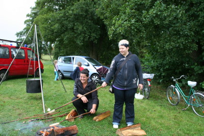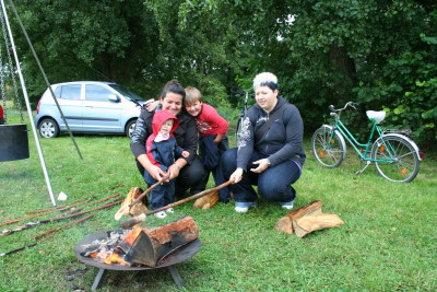 Knüppelkuchen backen. >Eigentlich sollten abends auf dem Teich viele