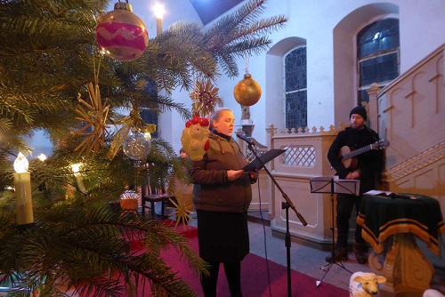 Sie hatte mit den Kindern der Kinderkirche ein selbstgeschriebenes (amüsantes) Krippenspiel eingeübt und konnte den Neu-Reetzer Musikschullehrer Michael Hornauer für die musikalische Begleitung gewinnen.