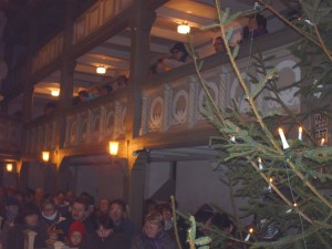 vollbesetzten Kirche wurden gemeinsam Weihnachtslieder gesungen, die