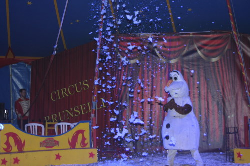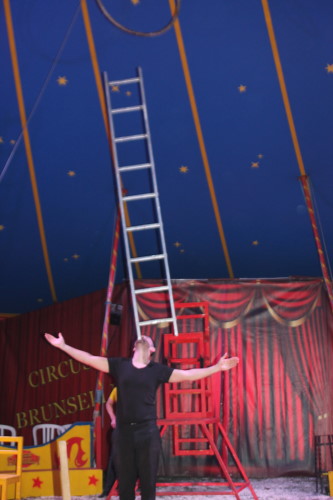 Früh übt sich, was ein Meister werden will. Im kleinen Zirkus Brunselli sind schon die Jüngsten mit in der Manege, wie der kleine Manson. Er ist gerade einmal 14 Monate alt, hat aber sichtlich seinen Spaß. In seiner Aufführung werden die Gäste in eine zauberhafte Märchenwelt entführt. Zu dieser gehören neben den Tieren und Akrobaten auch Märchenfiguren wie Elsa und Olaf und Einhörner. Staunend bewunderte das Publikum die Luftkünstler unter dem Zeltdach und belohnten sie mit viel Beifall. Durch das Programm führte in lockerer Art der Herr des Hauses – bzw. des Zeltes. Obwohl er das nicht von Anfang an war. Aus Liebe kam er zu dem Job, denn nachdem er einmal Zirkusluft geschnuppert hatte, wollte René Brunssen nie wieder etwas anderes machen. Dort hatte er nämlich seine Frau Manuela Kaselowsky kennengelernt. Sie gehört zu einem kleinen Familienzirkus und er war sofort verliebt – und begeistert. Nun sind die beiden seit 25 Jahren zusammen und touren mit dem kleinen Zirkus „Brunselli“ durch Deutschland. Den Zirkus gibt es inzwischen in der 7. Generation. Inzwischen gehören sieben Kinder, deren Partner und schon Enkelkinder dazu. „Wir Kinder sind da hineingewachsen“ erzählt Madeleine Kaselowsky. Sie ist mit ihren Geschwistern Teil der Aufführungen. Die 23 jährige hat eine Artistenschule besucht, zeigt Luftnummern mit Tüchern und Ringen, ist aber auch für die Requisiten zuständig. Die Brüder waren anfangs voll begeistern vom Trampolin springen. Das hatte sie bei Onkel und Tante gesehen, die ebenfalls einen Zirkus haben. Das wollten sie auch machen.